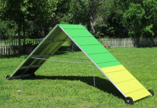Our A-Frame has a stainless steel frame with rubberized aluminum surface. The A-Frame is completely adjustable. By lengthening or shortening the chains, you can easily adjust the height. Due to its frame design, this A-Frame is steady even at lower heights.